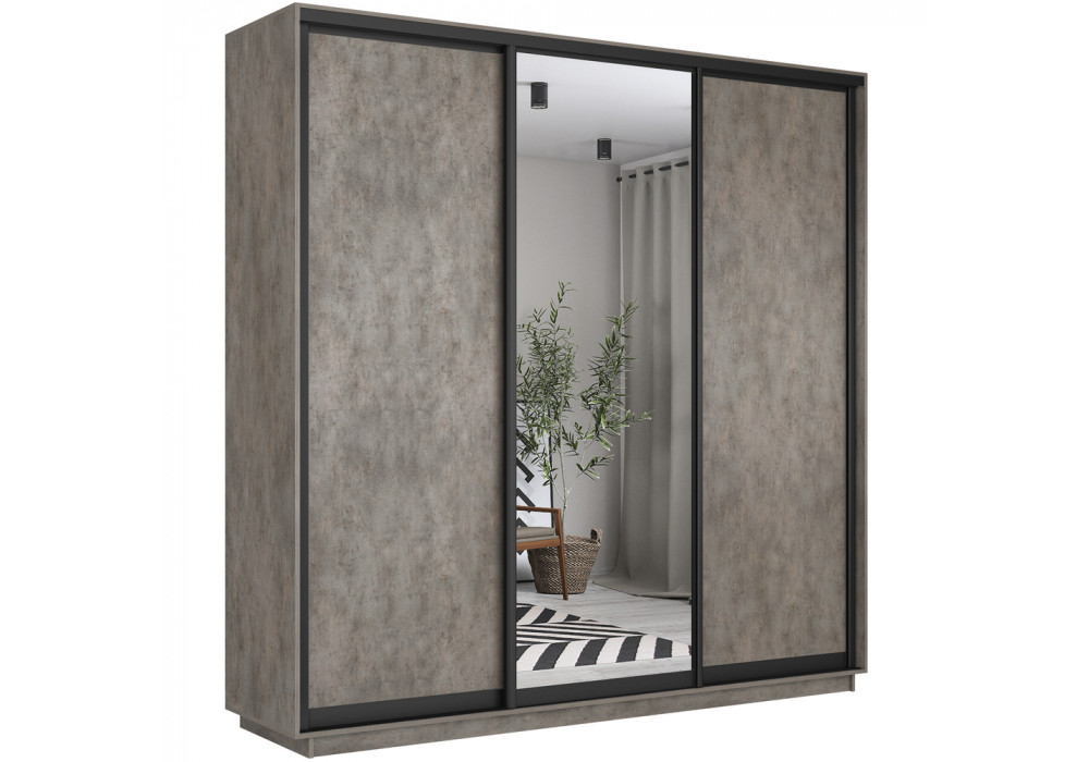Шкаф купе 3 двери (цемент тёмный, профиль чёрный)